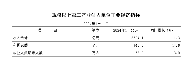 【月度数据】2024年1—11月规模以上第三产业法人单位主要经济指标