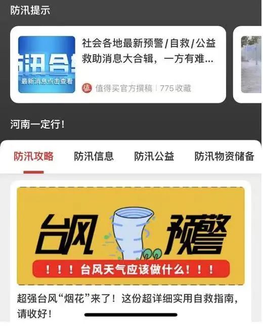 值得买科技公司坚持“党建引领,公益同行”的理念,积极践行社会责任,值得买科技充分发挥线上信息消费平台优势,坚持线上线下结合,不仅积极组织线下党员捐款,及时关注河南籍员工家庭的受灾情况,同时第一时间在“什么值得买”官网上线专题栏目“河南挺住”,实时发布针对河南暴雨的最新信息及抗洪自救等内容,传递灾区需求,提供及时在线帮助。