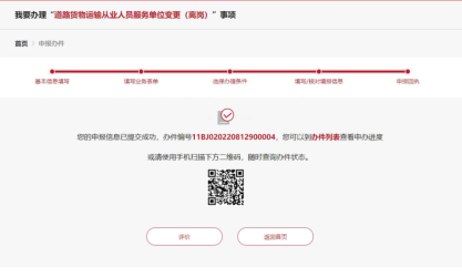 3.提交完成后,页面提示“您的申报信息已提交,办件编号。。。”等信息