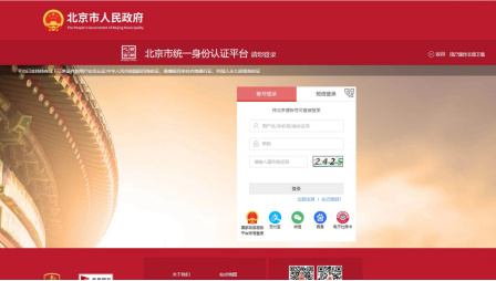 1.输入北京市统一身份认证平台账号信息,登录系统,