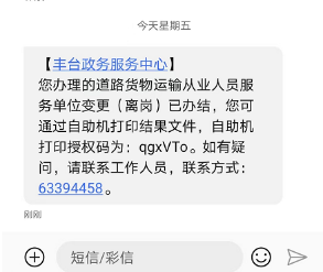 为进一步推动释放审批改革效能,实现政务服务“就近办”“自助办”“随时办”。近日,丰台区政务服务局会同区运输管理分局,通过应用区块链共享数据,推出了道路运输从业人员服务单位变更(上岗)、道路运输从业人员服务单位变更(离岗)、道路运输从业人员资格有效期届满换证、道路货物运输企业车辆注销(含减少经营范围)四个事项应用场景,可实现办事人员无需自带纸质材料、减跑动,自助打印证照,7月以来,共办理85件。