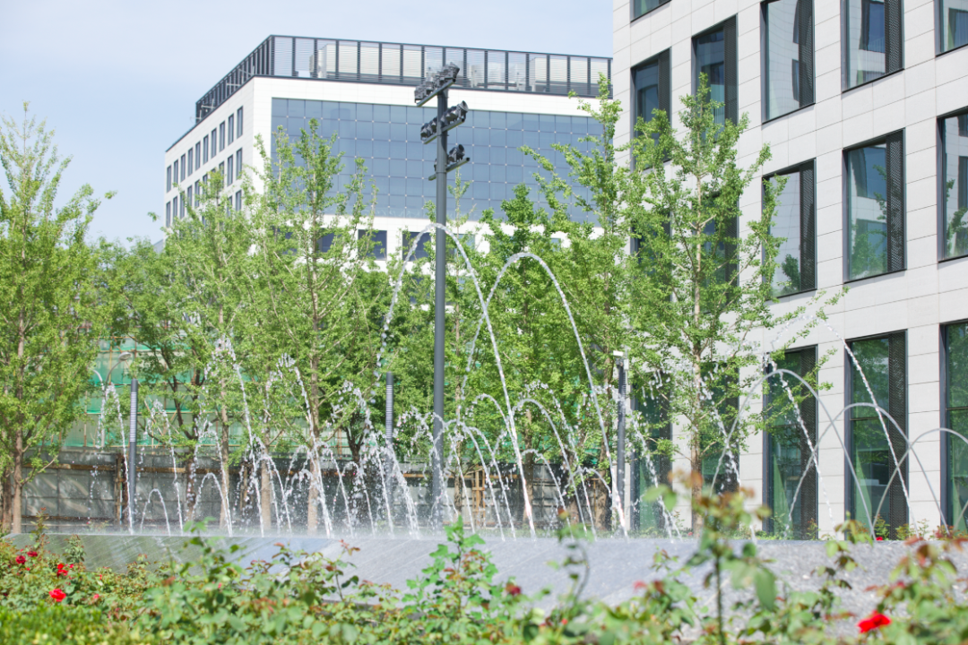 在园区漫步,可以看到中央公园植被多样、景观层次丰富。据工作人员介绍,这里有80多种垂直绿化植物,2500余株植物,曾获得“第九届国际艾景奖年度十佳景观设计”,称得上真正的“花园式办公”。
