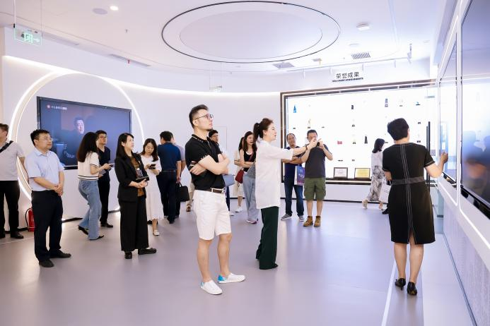建设南中轴国际文化科技园,正是“妙笔生花靠实干”的一个生动实践,南中轴国际文化科技园将打造新一代信息技术为主导,文化贸易数字贸易和高端科技服务为支撑的产业格局,为服务首都功能提供高品质载体。参加活动人员一起参观了南中轴国际文化科技园数智创新中心,听取园区整体情况介绍,并参观引进企业展厅,体验AR入目智能眼镜等产品。