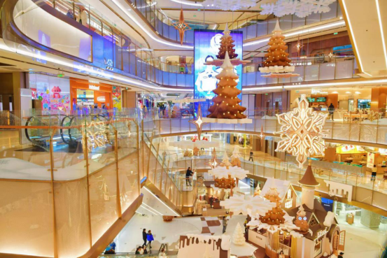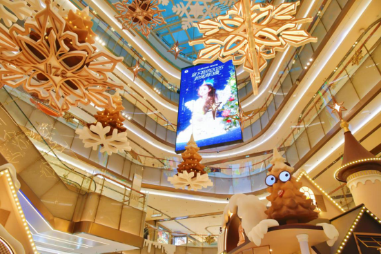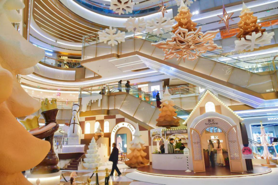 配套打造的巧克力小镇区域,通过旋转象棋八音盒、雪松造型装饰等精致景观,与全馆冬日吊饰、层叠雪松装饰交相辉映,构建起兼具观赏性与体验感的消费空间,让每一位到访者都能感受到浓浓的冬日气氛。
