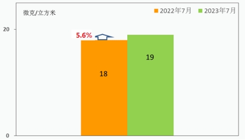 7月份全区PM2.5月均浓度为19微克/立方米,同比去年反弹5.6%,全市排名第7名,其中丰台区在城六区中排名并列第1名。