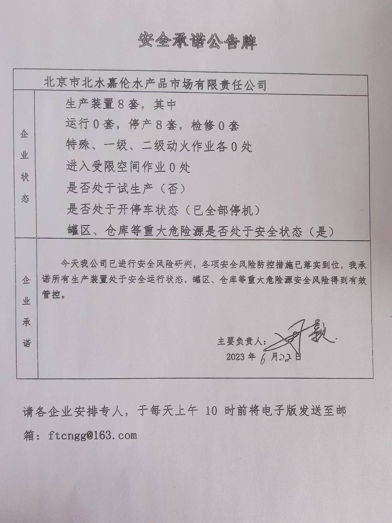 北京市北水嘉伦水产有限品市场责任公司安全承诺公告牌0622