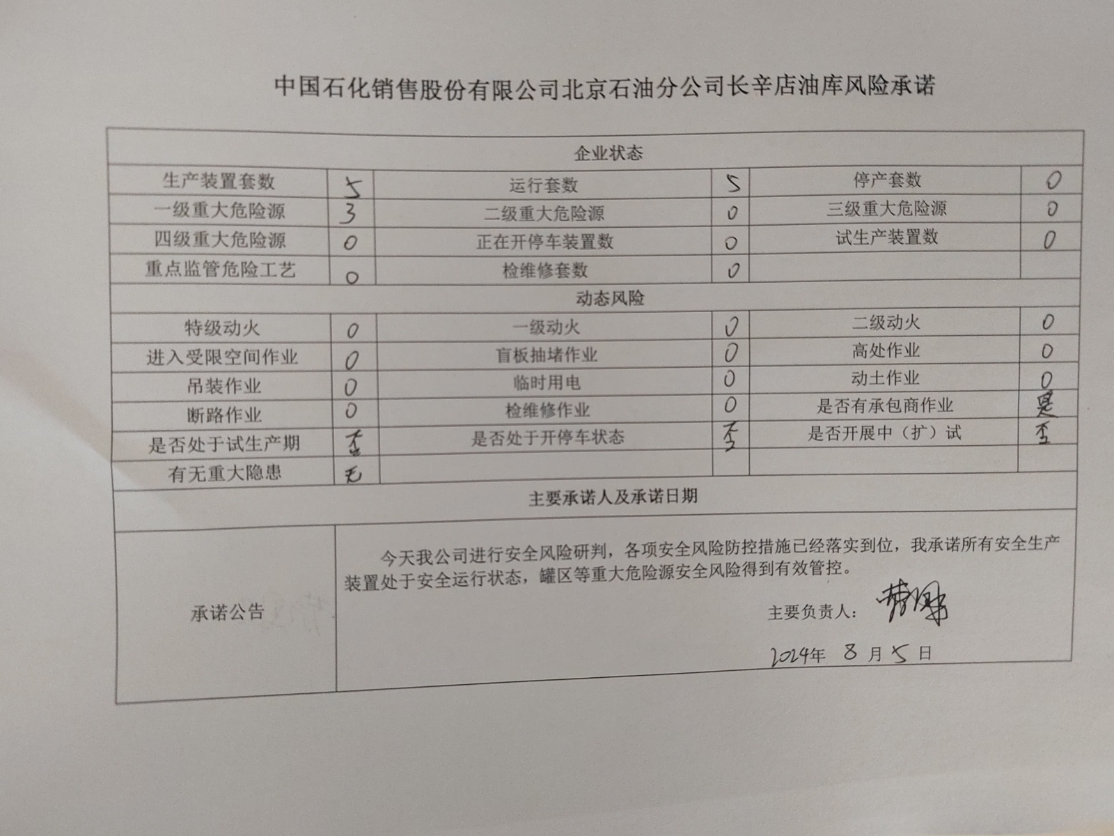 中国石化销售有限公司北京长辛店石油库安全承诺公告牌0805