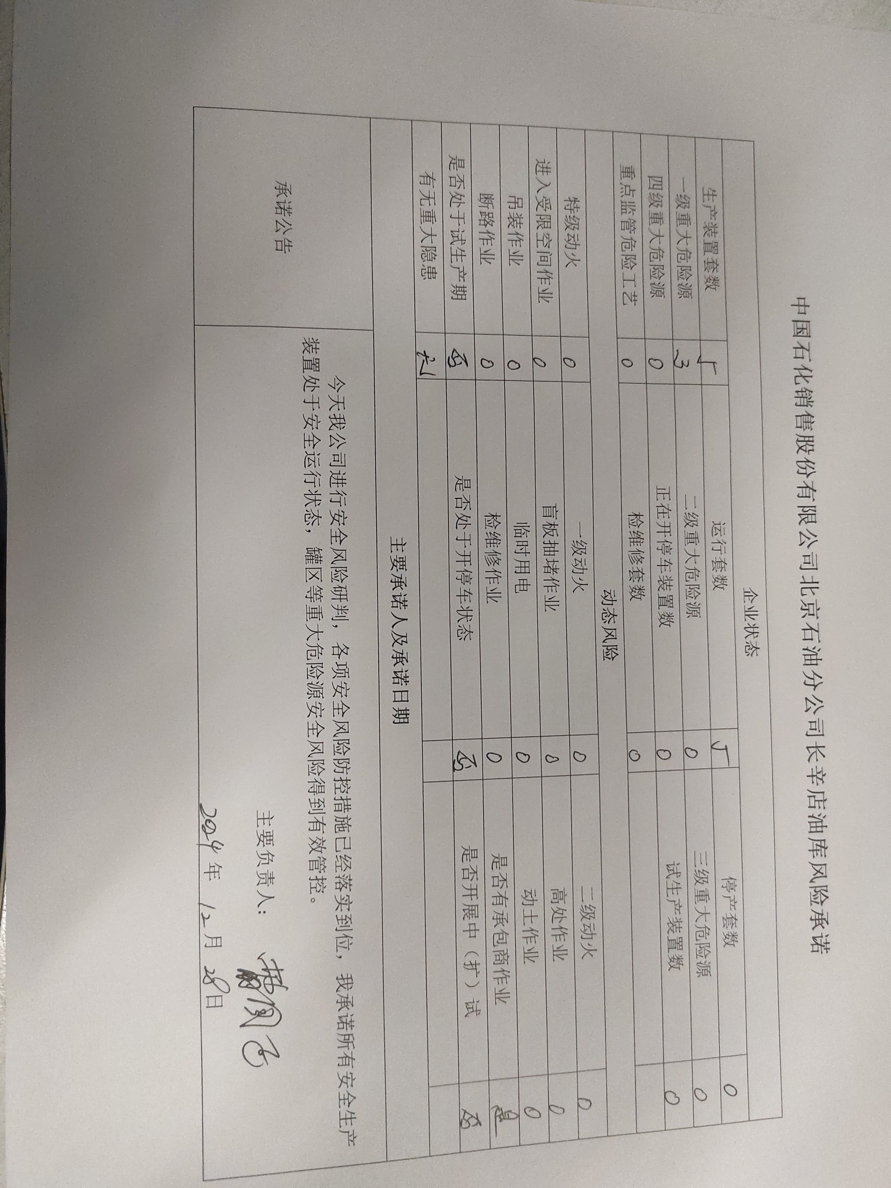 中国石化销售有限公司北京长辛店石油库安全承诺公告牌1228