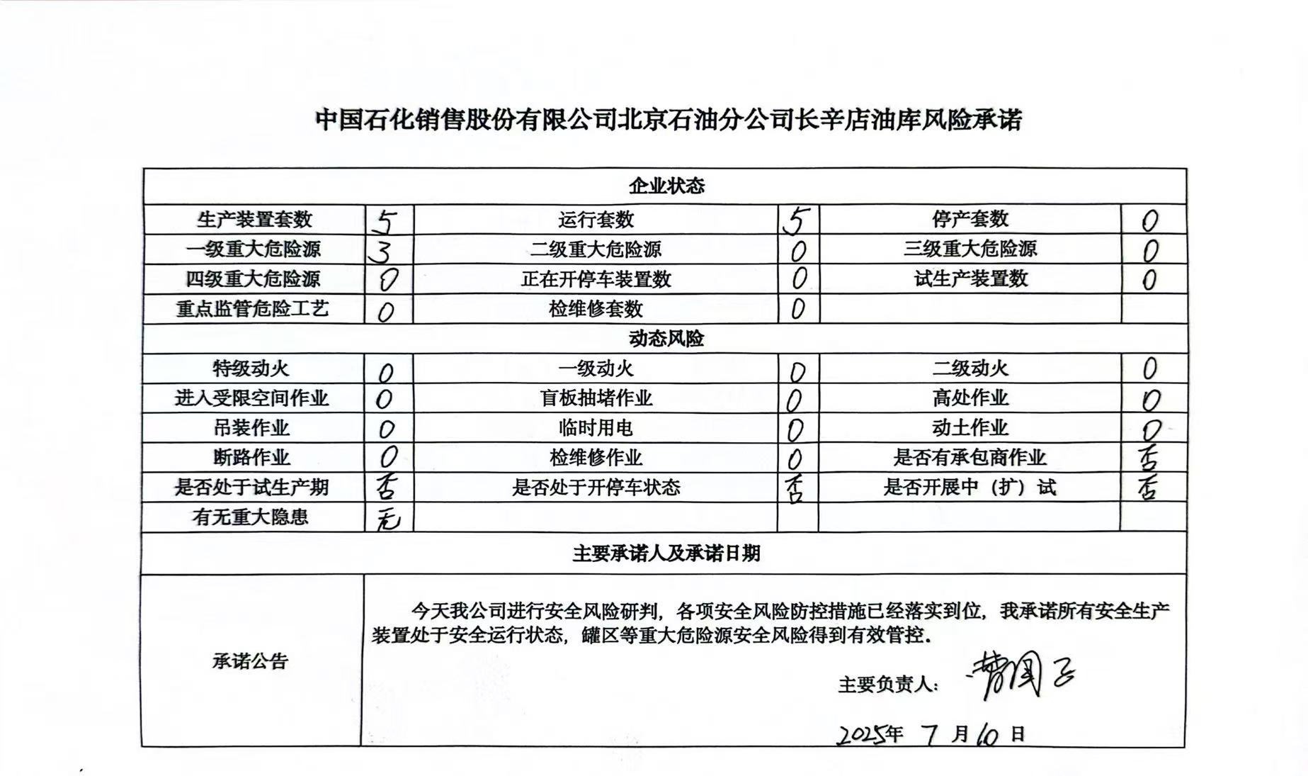 中国石化销售有限公司北京长辛店石油库安全承诺公告牌0710