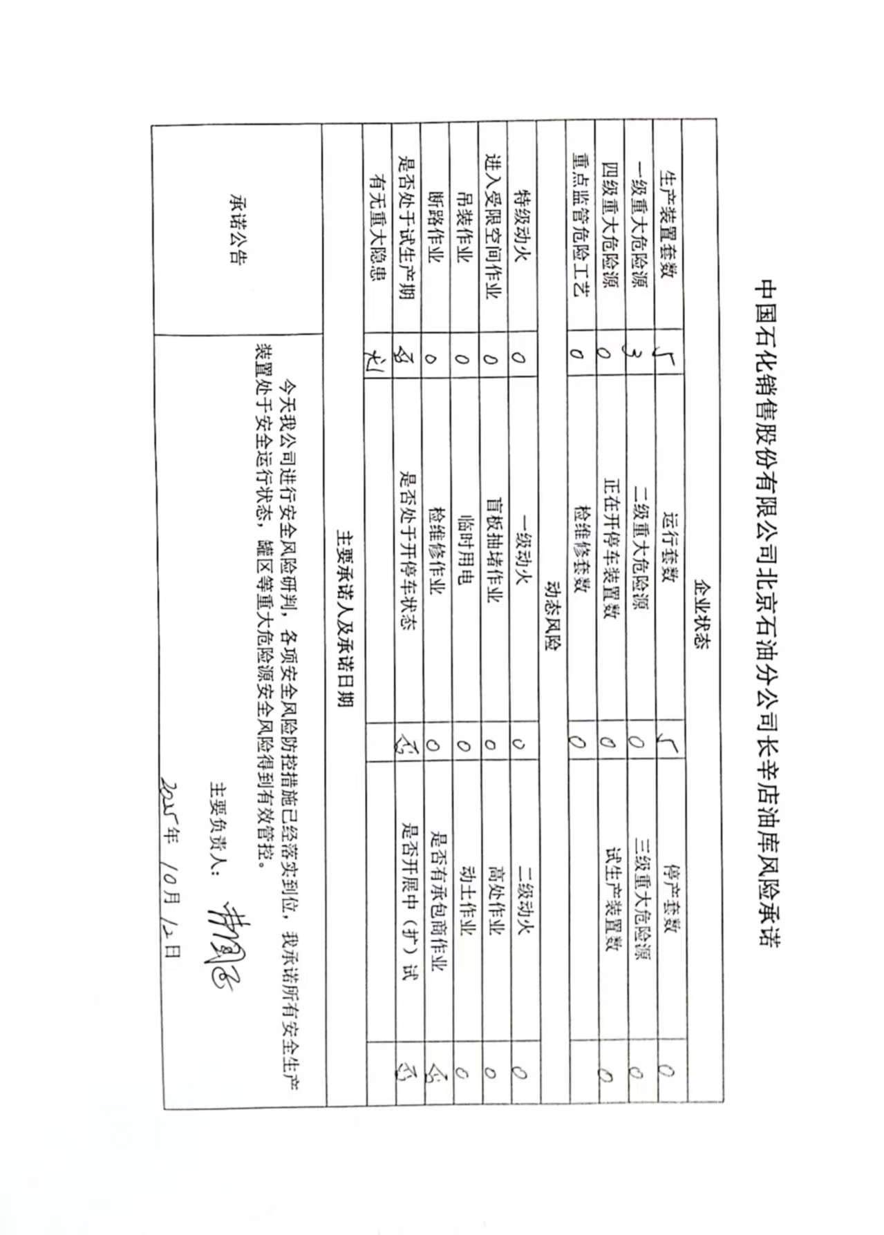 中国石化销售有限公司北京长辛店石油库安全承诺公告牌1012
