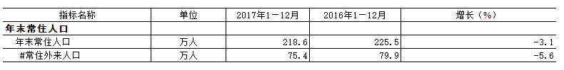 2017年12月年末常住人口