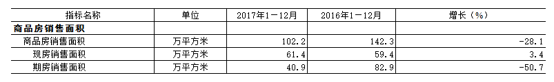 2017年12月商品房销售面积