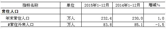 2015年12月年末常住人口