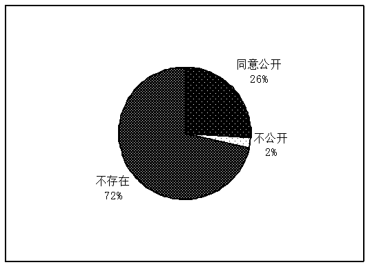 11件,占总数26的%;不公开1件,占总数的2%; 不存在件,占总数的72%。