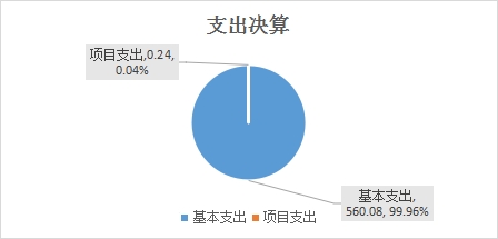 2022年度本年支出合计560.32万元,比上年减少337.86万元,降低37.62%,其中:基本支出560.08万元,占支出合计的99.96%;项目支出0.24万元,占支出合计的0.04%;上缴上级支出0万元,占支出合计的0%;经营支出0万元,占支出合计的0%;对附属单位补助支出0万元,占支出合计的0%。