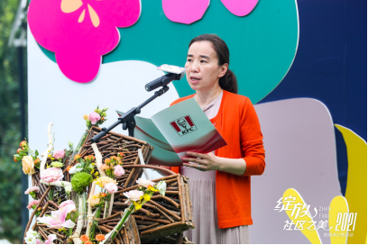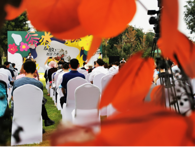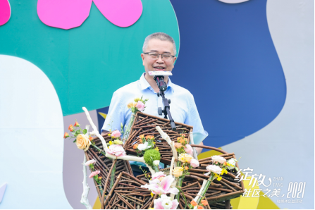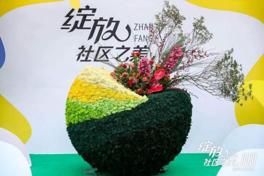 春华秋实、水润万物,万物生发。四季之美,源于色彩;万物之美,源于生命;社区之美,源于向往。半圆球体象征地球和环境,承载着家、承载着社区、承载着国的美好寓意。作品彰显出硬与柔的对比、简与繁的对比,寓意生活的不同状态,体现各种状态的美。现场嘉宾共同完成名为 “万物生发”的花艺作品,预示着活动正式启动。
