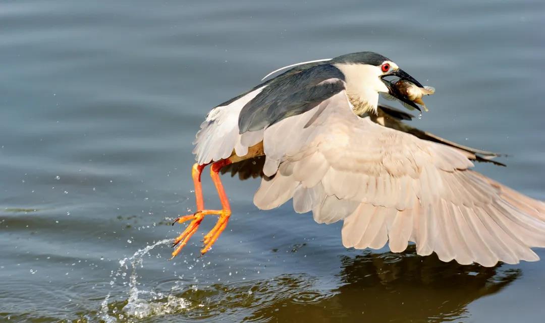 夜鹭,国家三级保护动物,由于具备夜视能力,因此被称为“夜鹭”。夜鹭主要以鱼、蛙、虾、水生昆虫等动物性食物为食,通常于黄昏后从栖息地分散成小群出来,三三两两于水边浅水处涉水觅食,也单独伫立在水中树桩或树枝上等候猎物,眼睛紧紧地凝视着水中。清晨太阳出来以前,则陆续回到树上隐蔽处休息。