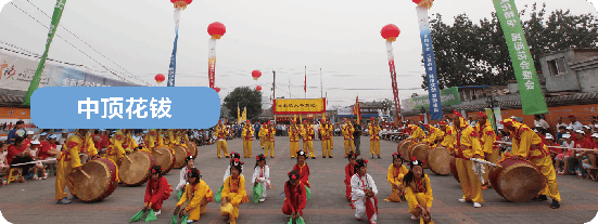 "中顶花钹"位于丰台区南苑乡和花乡辖区范围内,主要文化资源以北京五顶之一——中顶庙为核心,是碧霞元君传统文化、十三档花会等丰台重要民间节庆习俗的汇聚地,也是西铁营花钹挎鼓等非遗文化表演传承地。