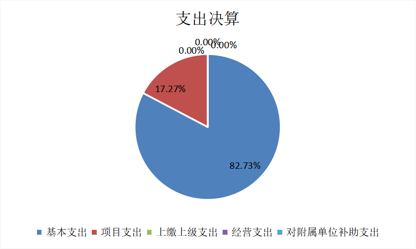 2024年度本年支出合计332.49万元,比上年减少8.49万元,下降2.62%,其中:基本支出275.06万元,占支出合计的82.73%;项目支出57.43万元,占支出合计的17.27%;上缴上级支出0万元,占支出合计的0%;经营支出0万元,占支出合计的0%;对附属单位补助支出0万元,占支出合计的0%。