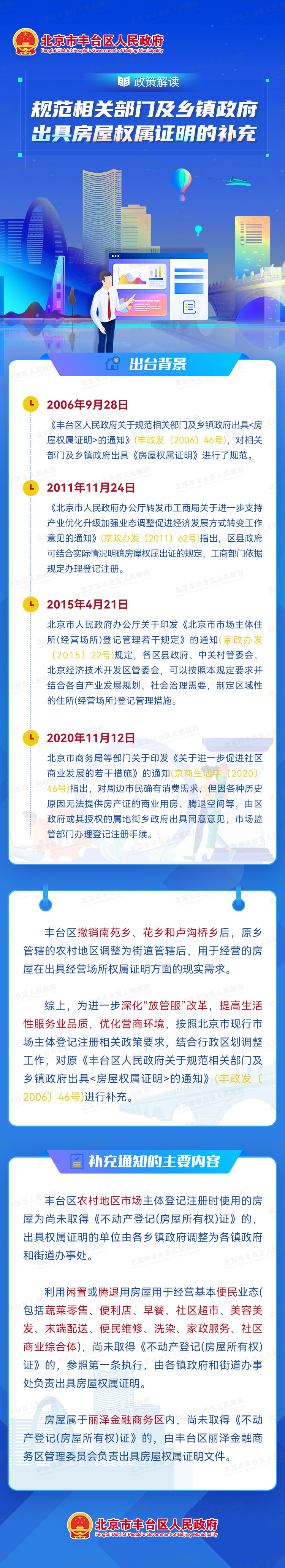 • 北京市丰台区人民政府办公室关于规范相关部门及乡镇政府出具房屋权属证明的补充通知