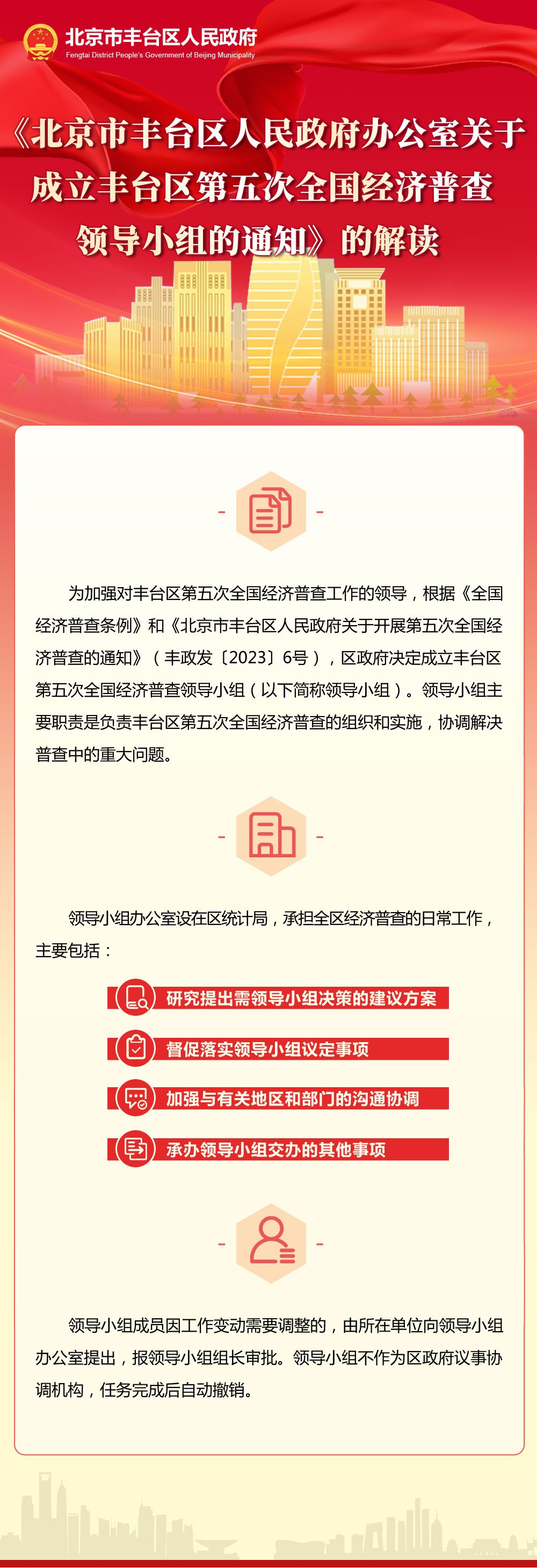 • 【图解】《北京市丰台区人民政府办公室关于成立丰台区第五次全国经济普查领导小组的通知》的解读