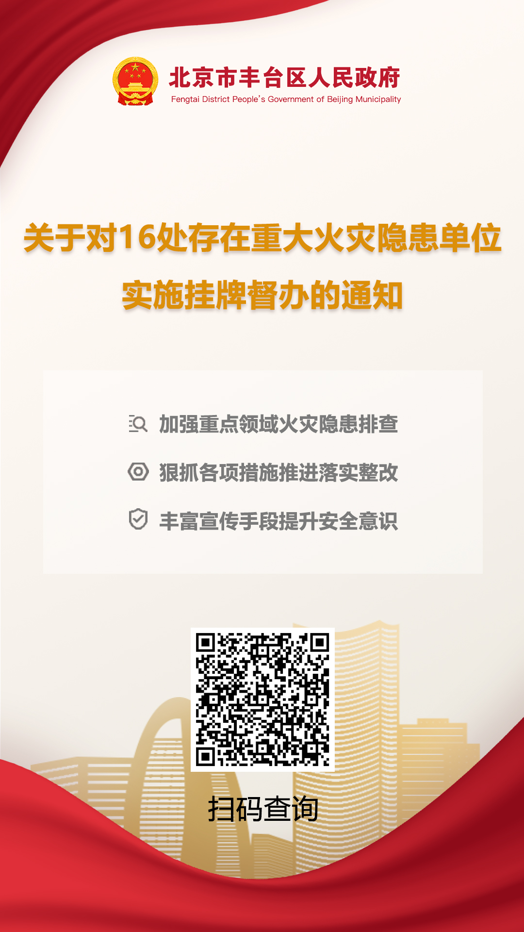 • 北京市丰台区人民政府办公室关于对16处存在重大火灾隐患单位实施挂牌督办的通知