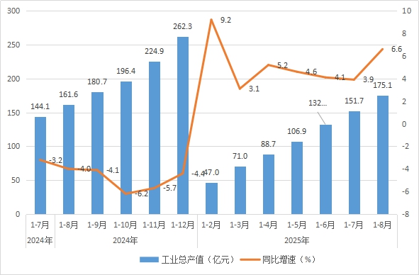 图1:2024年8月-2025年8月丰台区工业总产值及增速