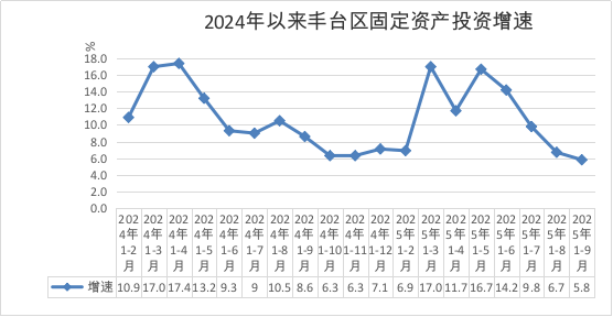 1-9月,丰台区固定资产投资(不含农户)同比增长5.8%。其中,房地产开发投资下降0.5%。基础设施投资增长11.2%。分产业看,第二产业投资增长94.3%;第三产业投资增长4.8%。