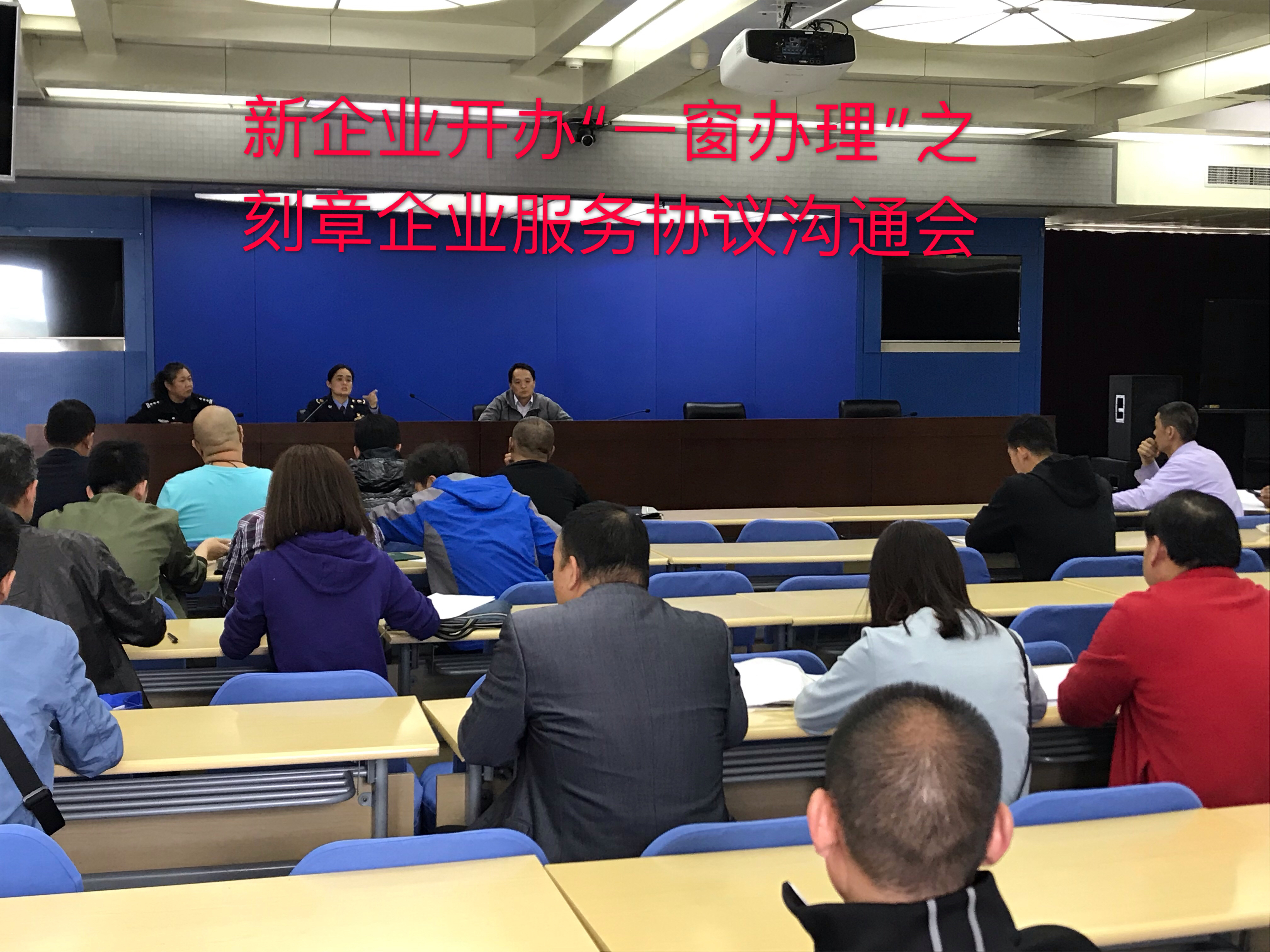 本周,区政务服务局联合市场监管、公安部门,组织全市44家(其中丰台区10家)具备资质的刻章机构召开服务协议沟通签订会,现场签订服务协议,明确要求自收到刻章订单后2小时内将1套(4枚)公章送达综合窗口。如送达不及时,将取消其提供服务资格。此项举措进一步精简了企业开办的办理环节、节约办理时间,得到了企业人员的好评。