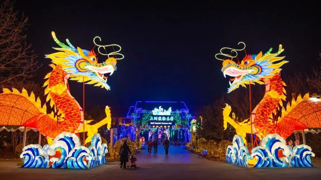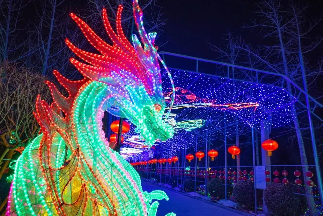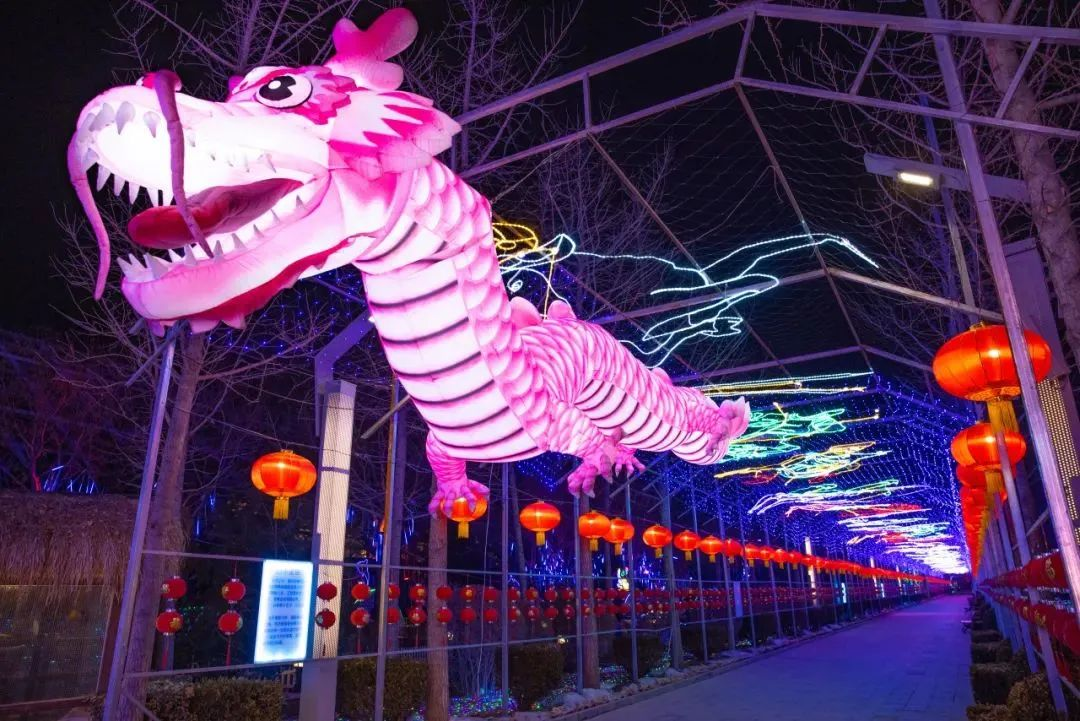 2月10日—2月25日,北京青龙湖公园正举办新春游园会,涵盖夜游灯光、民俗表演、美食游乐等三大版块、六大亮点。游园会以盛唐文化为背景,以国风元素为主线,以上百组大型仿古国潮灯为主,惟妙惟肖的各类花灯为辅,点亮整个北京青龙湖公园,营造出沉浸式观灯体验的氛围。