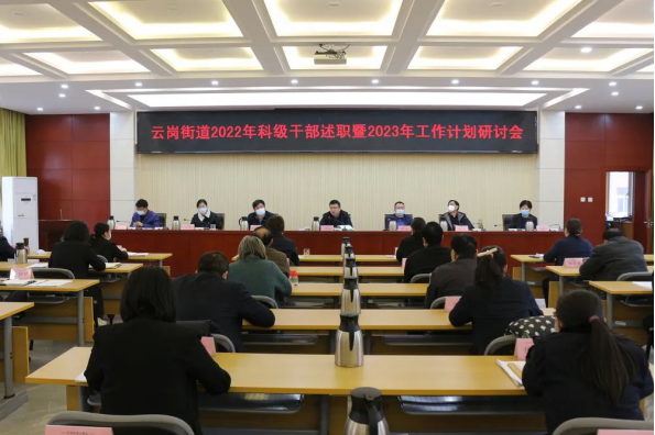 2月11日上午,云岗街道召开2022年科级干部述职会暨2023年工作计划研讨会。街道领导班子成员、副科级实职以上干部参加会议。