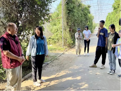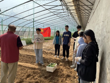 随后,傅宝奎同志带领团员们走进丰裕农场,实地观摩了西红柿、豆角、黄瓜蔬菜种植基地,并亲身体验了栽种北京3号小白菜。