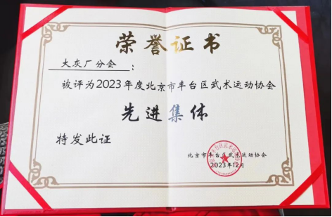 近日,北宫镇大灰厂村传出喜讯,大灰厂村武术分会(太极队)在丰台区武术协会年终表彰大会上再次获奖,连续五年荣获“先进集体”称号。