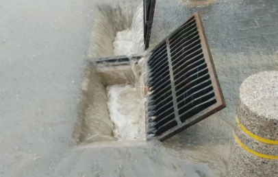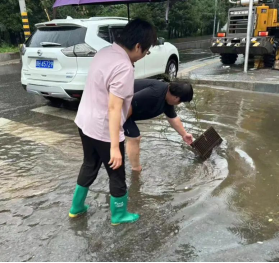 防汛人员逐一排查下水道口,将积水处的石块、垃圾清理干净,确保流水畅通。