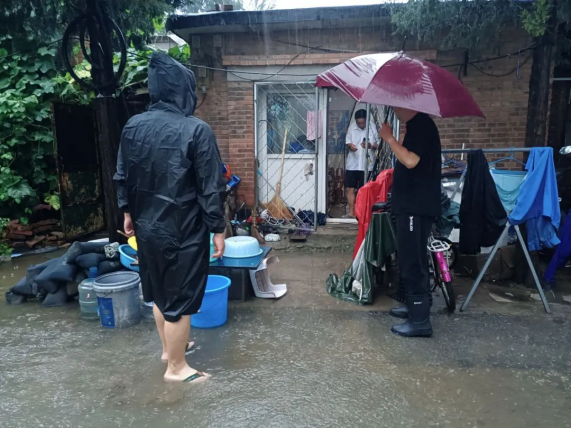 雨势持续增大,防汛人员到平房区走访摸排,逐户询问群众房屋是否有漏雨情况,叮嘱群众备好手电筒、雨衣雨鞋等防汛物资,出现漏雨情况立即通知村委会(居委会),随时向应急避难所转移。