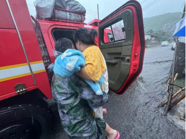 大灰厂社区平房区部分住户家中漏雨情况严重,居委会联合新兴际华公司将3名居民转移至石门口安全地带。