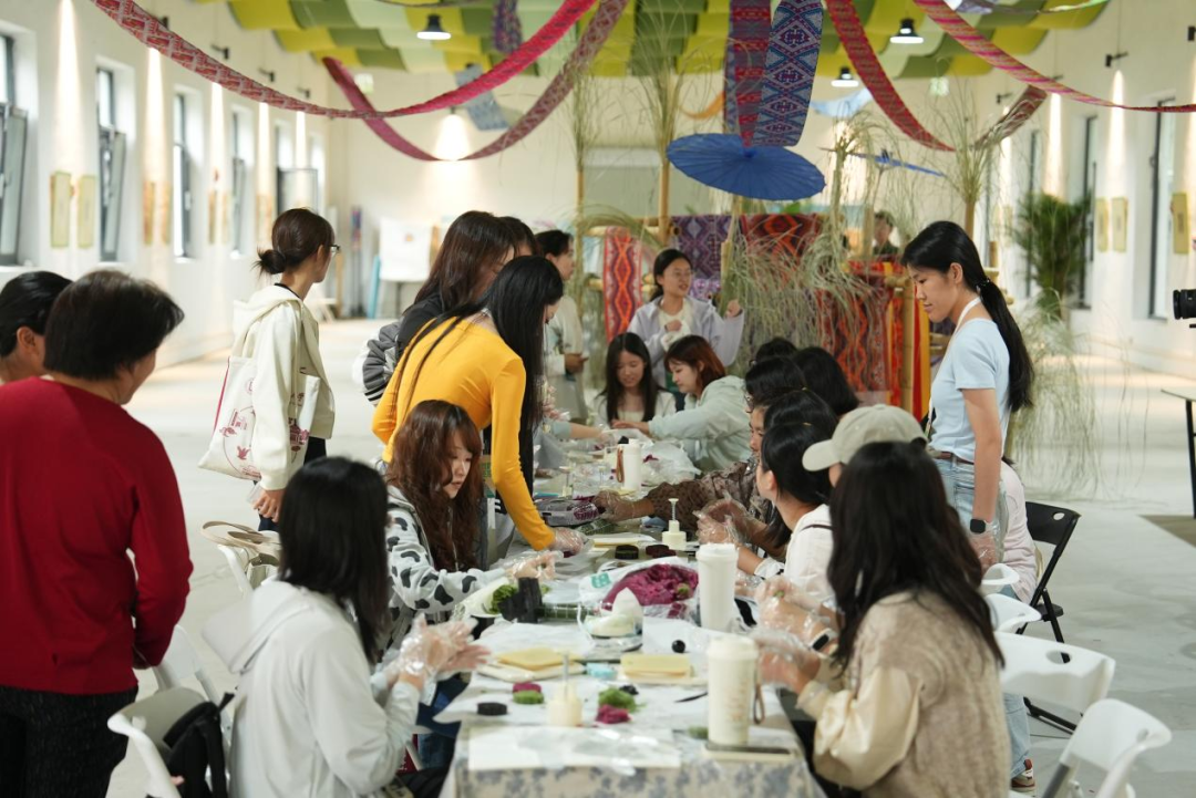 活动中,以“月饼寄情,民族同心”为主题的月饼制作体验环节上,布置一新的食材、模具一应俱全。在志愿者同学的耐心讲解和示范下,学生们兴致勃勃地投入实践中。和面、制皮、包馅、压模……每一步都充满了新奇与挑战。中央民族大学的同学和游客们凭借对文化的熟悉度很快上手,并主动担当起“小老师”,热情地帮助身边的国际交流生伙伴。