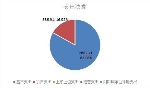 2023年度本年支出3469.62万元,比上年减少419.65万元,下降10.79%,其中:基本支出2882.71万元,占支出合计的83.08%;项目支出586.91万元,占支出合计的16.92%;上缴上级支出0万元,占支出合计的0%;经营支出0万元,占支出合计的0%;对附属单位补助支出0万元,占支出合计的0%(见图2)。