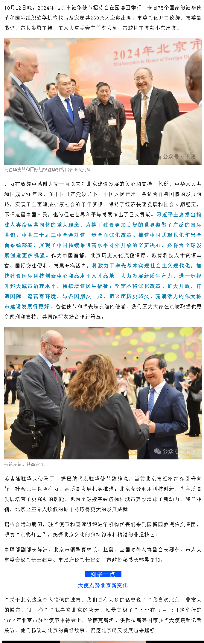2024年北京市驻华使节招待会在园博园举行,尹力致辞,殷勇主持