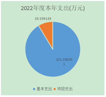 2022年度本年支出合计351.79万元,是2022年财政预算新增单位。其中:基本支出321.39万元,占支出合计的91.36%;项目支出30.40万元,占支出合计的8.64%。