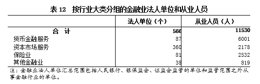 2018年末,全区共有金融业法人单位566个,从业人员11530人,分别比2013年末增长169.5%和242%(详见表12)。