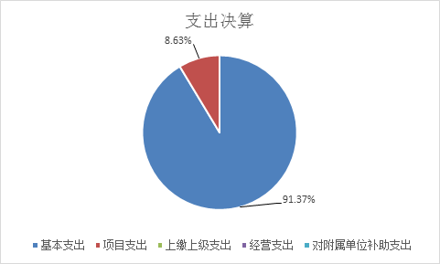 2023年度本年支出合计19434.97万元,比上年增加279.21万元,增长1.46%,其中:基本支出17757.86万元,占支出合计的91.37%;项目支出1677.11万元,占支出合计的8.63%;上缴上级支出0万元,占支出合计的0%;经营支出0万元,占支出合计的0%;对附属单位补助支出0万元,占支出合计的0%。