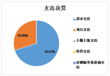 2022年度本年支出合计3674.37万元,比上年4254.49万元减少580.12万元,减少13.64%,其中:基本支出2572.76万元,占支出合计的70.02%;项目支出1101.61万元,占支出合计的29.98%;上缴上级支出0.00万元,占支出合计的0.00%;经营支出0.00万元,占支出合计的0.00%;对附属单位补助支出0.00万元,占支出合计的0.00%。
