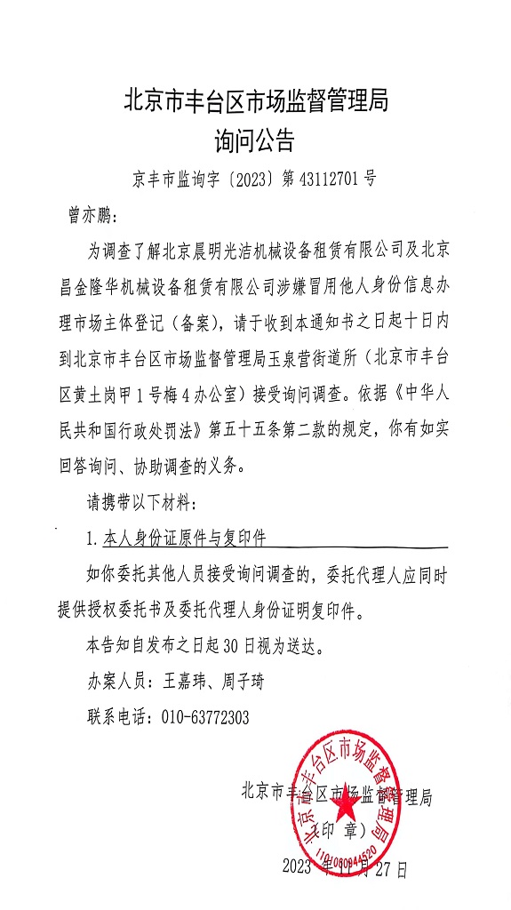 询问公告(曾亦鹏)-北京市丰台区人民政府网站