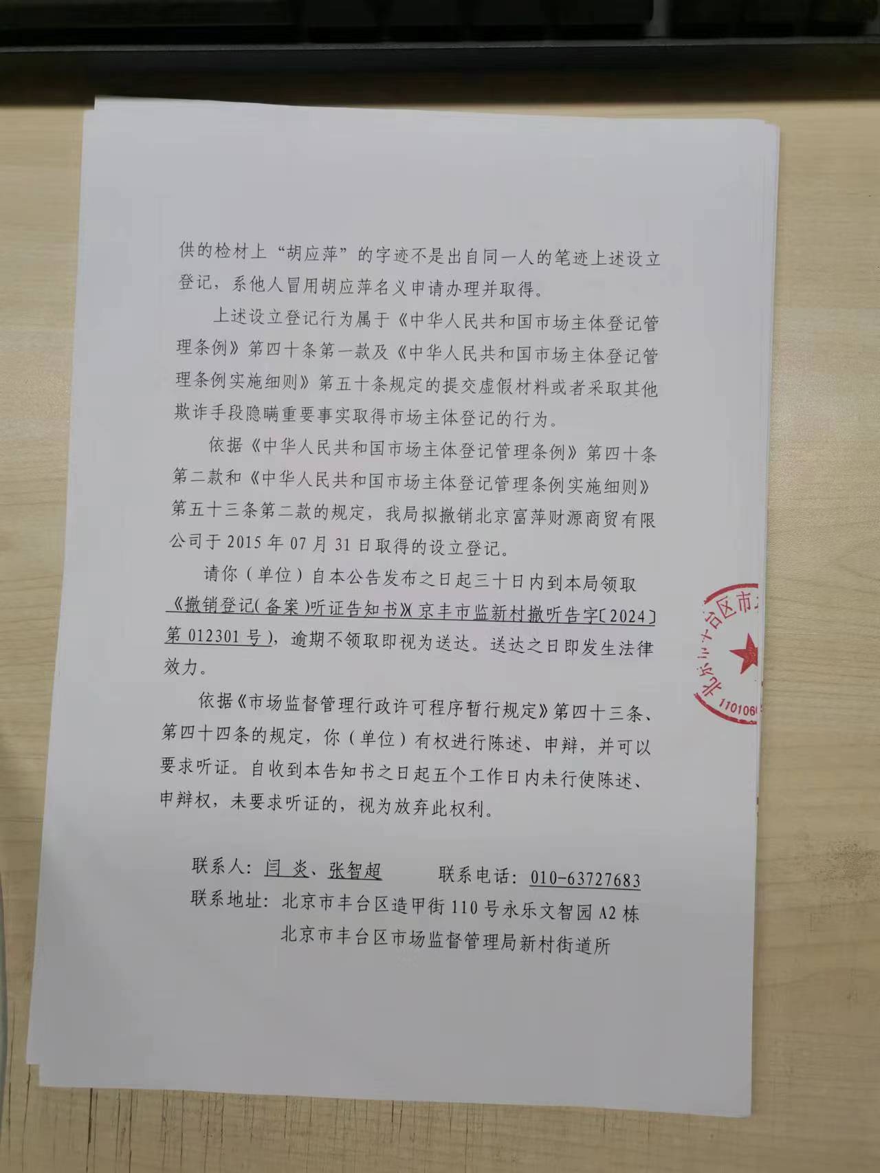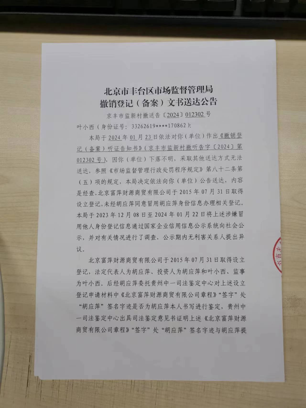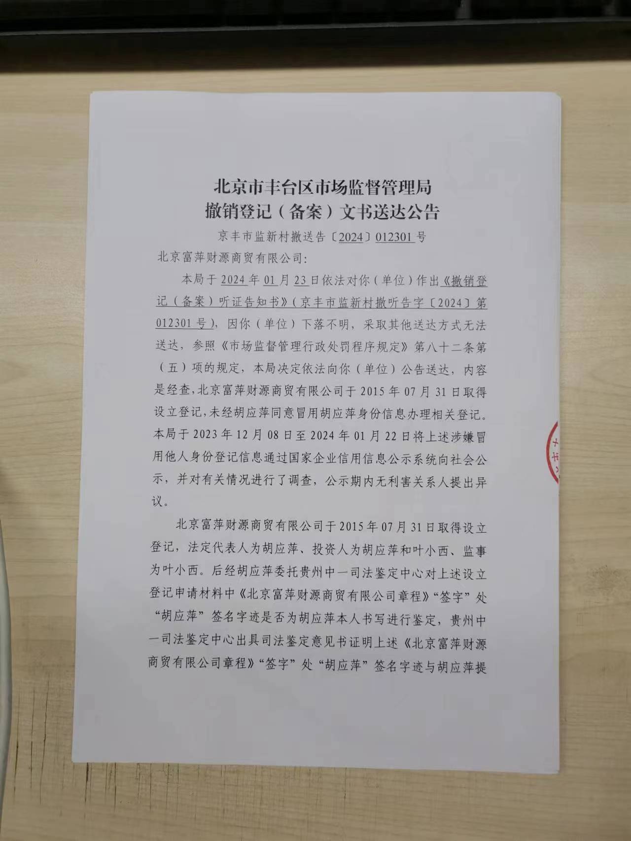 撤销登记(备案)文书送达公告-北京富萍财源商贸有限公司-北京市丰台区人民政府网站
