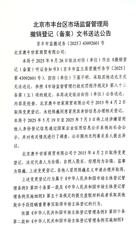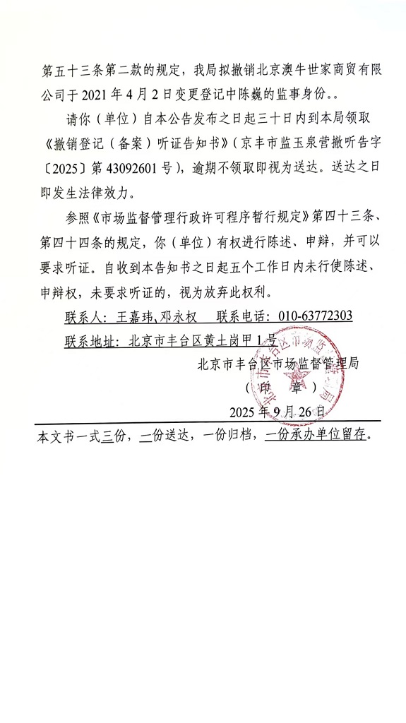 听证公告(北京澳牛世家商贸有限公司)-北京市丰台区人民政府网站