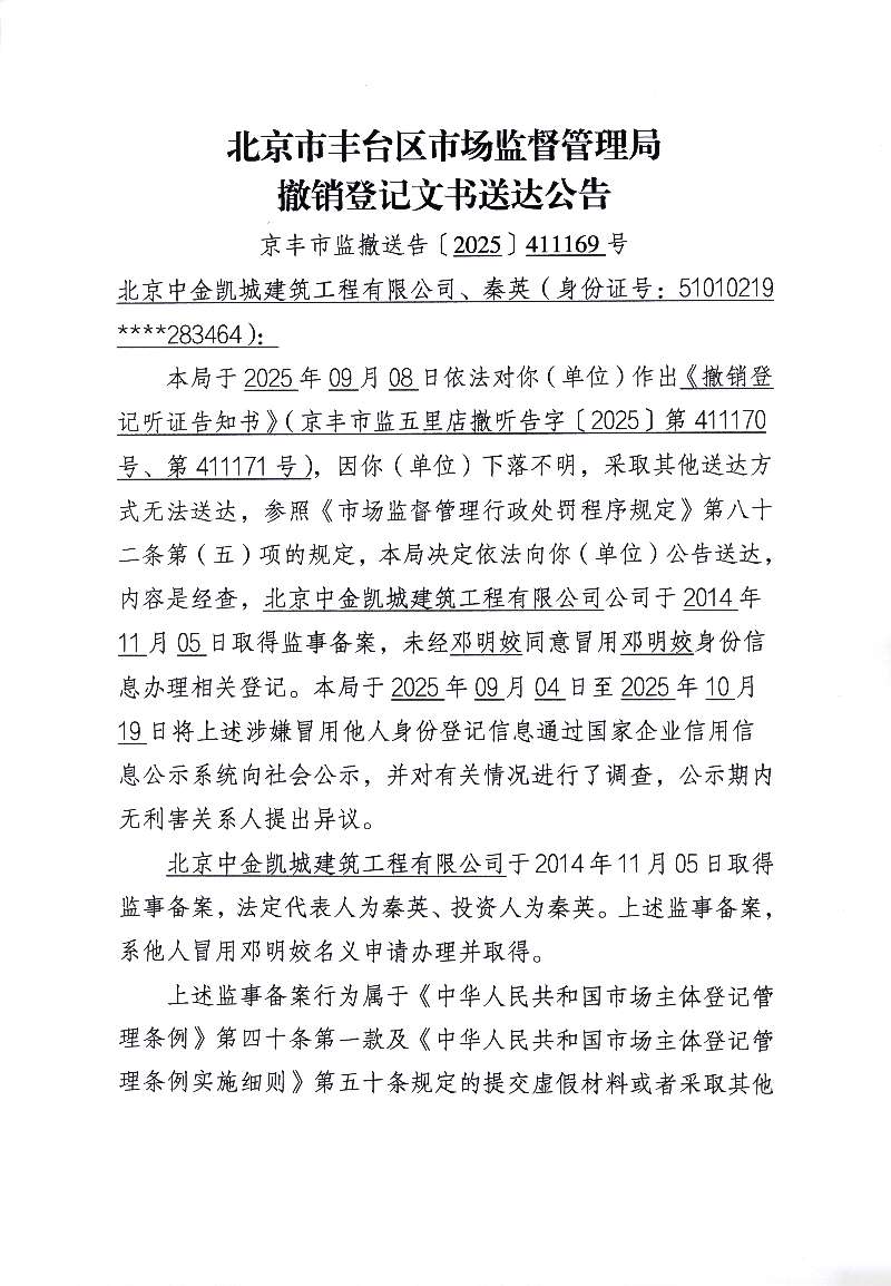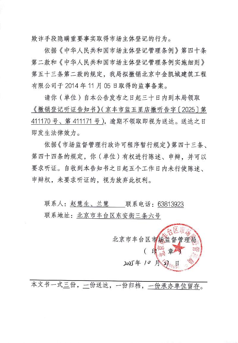 北京中金凯城建筑工程有限公司-听证公示-北京市丰台区人民政府网站