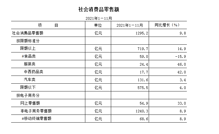社会消费品零售额:指企业(单位、个体户)通过交易直接售给个人、社会集团用于非生产、非经营用的实物商品金额,以及提供餐饮服务所取得的收入金额。