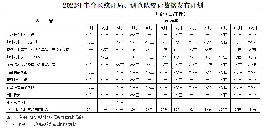 2023年丰台区统计局、调查队统计数据发布计划-北京市丰台区人民政府网站