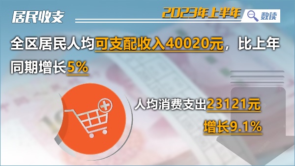 2023年上半年,丰台区居民人均可支配收入40020元,比上年同期增长5%。人均消费支出23121元,增长9.1%。